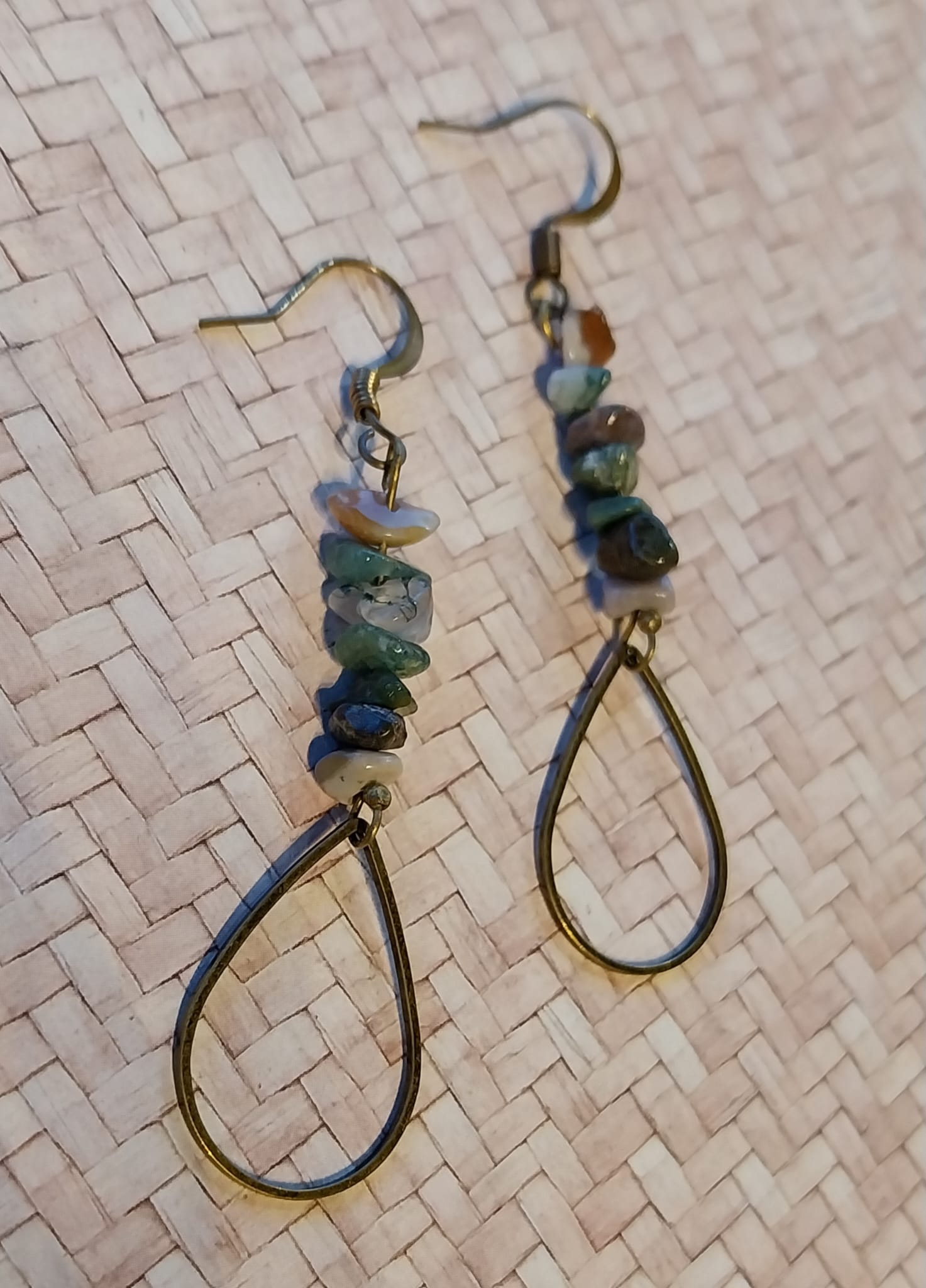 Boucles d'oreilles couleur goutte bronze et pierres d'agate indienne.