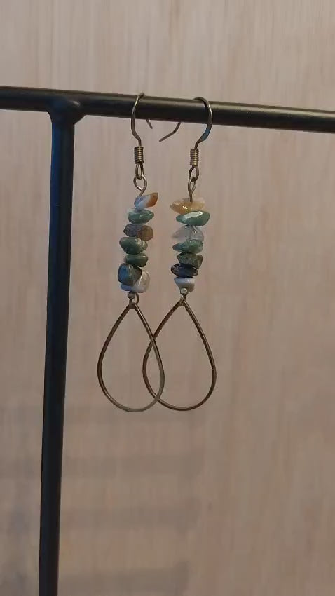 Boucles d'oreille couleur bronze goutte et pierres d'agate indienne