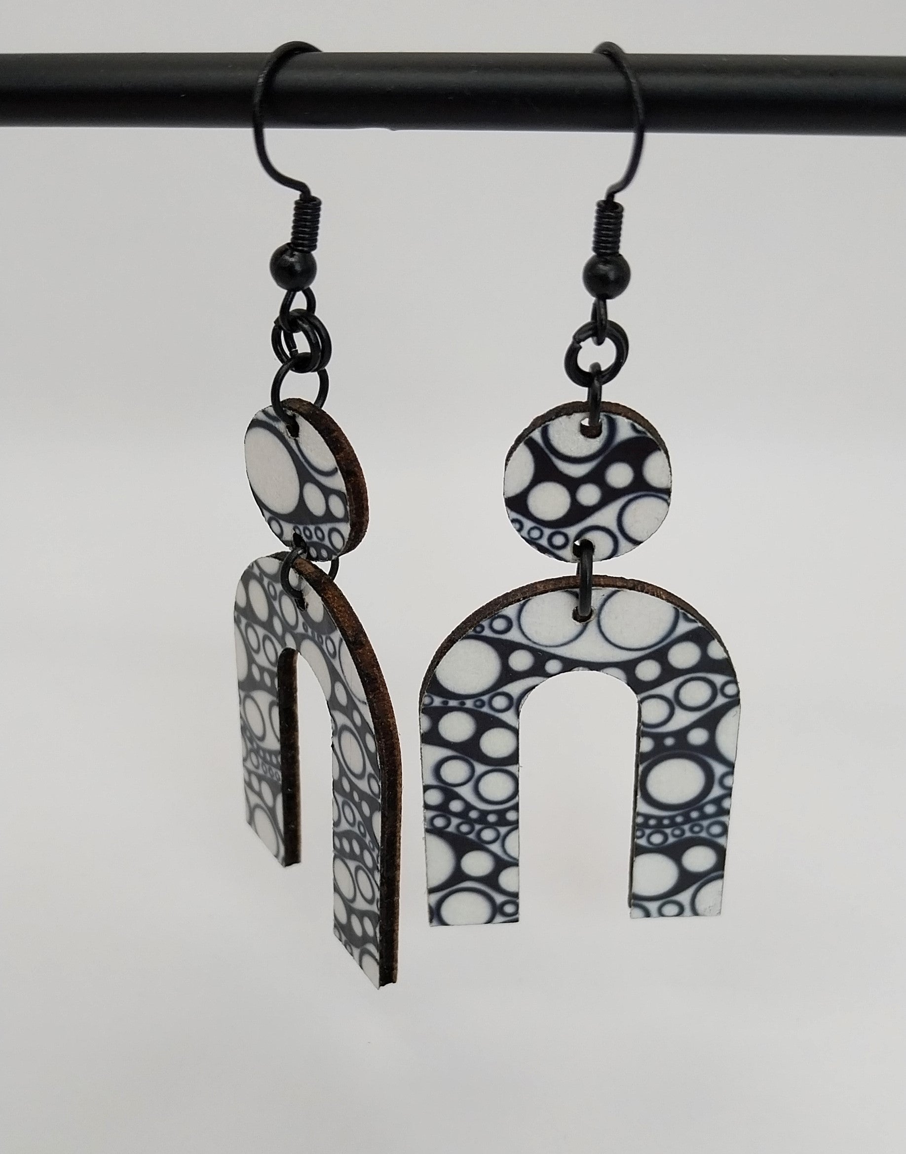 Boucles d'oreille zentangle noir et blanc en bois