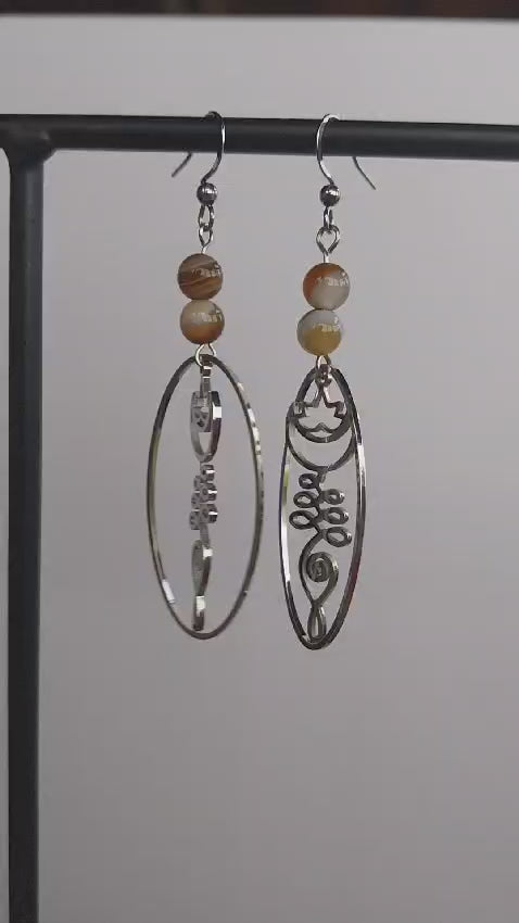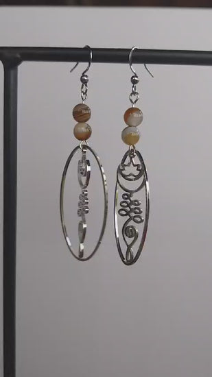 Boucles d'oreilles agate et fleur de lotus couleur argent. Les perles en agate sont délicatement striées, les couleurs sont donc variables.