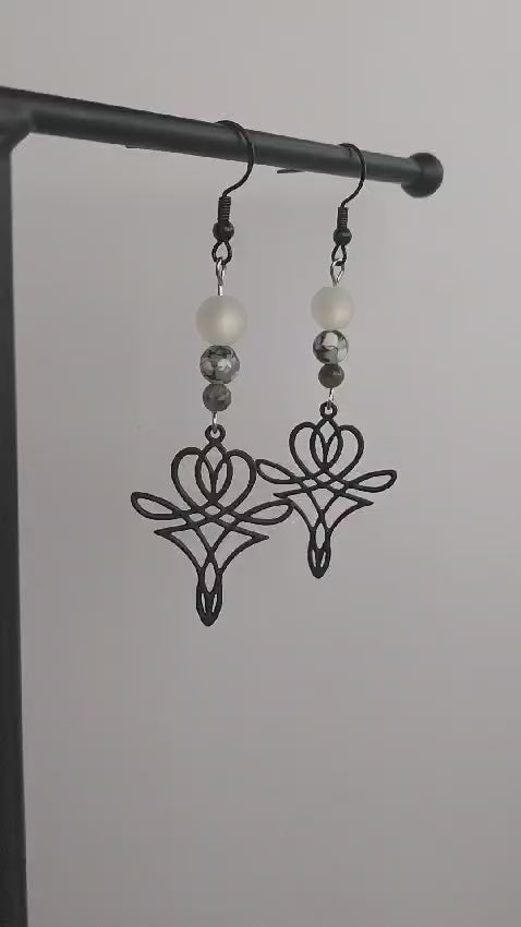 Boucles d'oreilles perles veines du dragon et breloques noires graphiques.